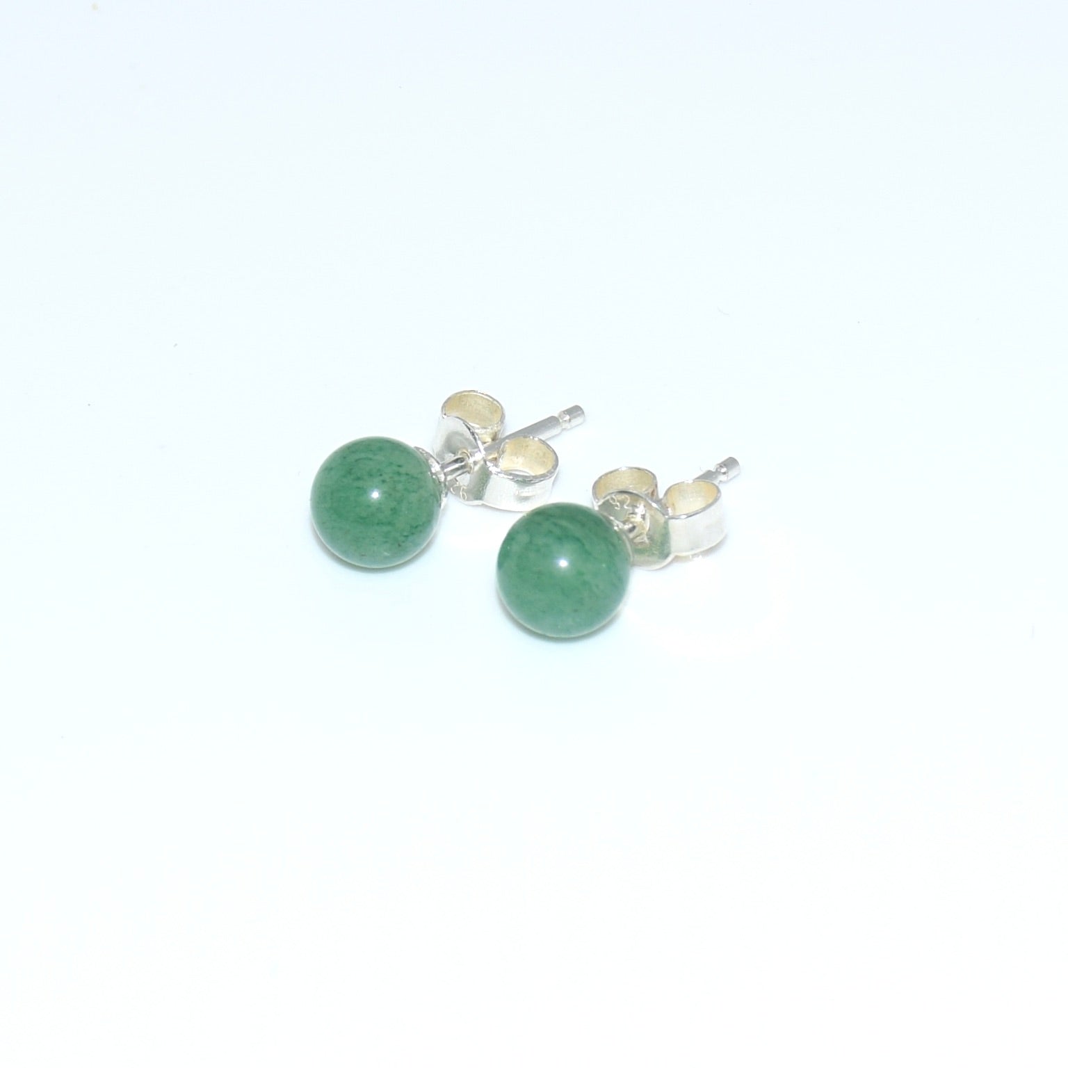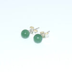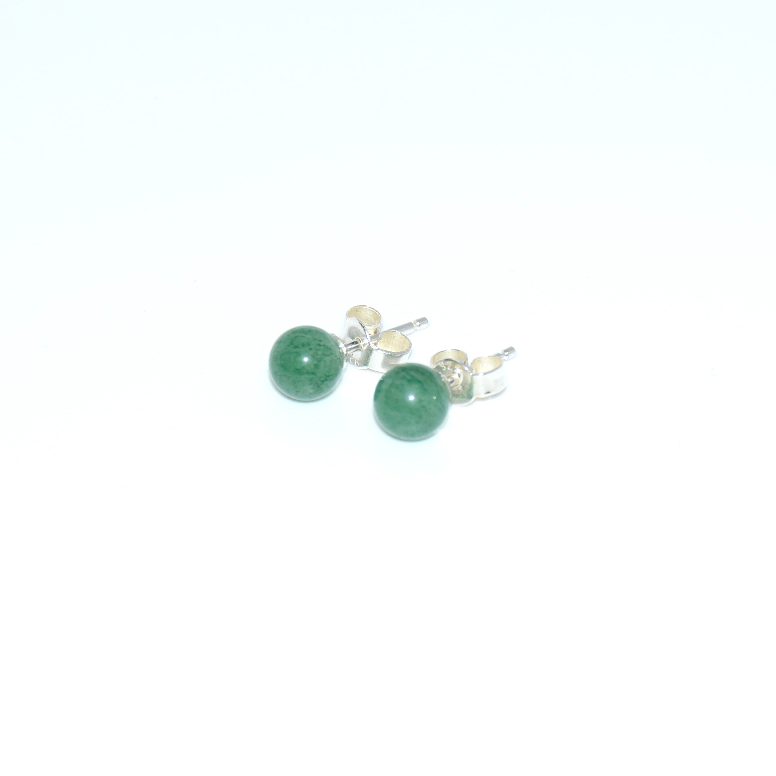 • Boucles d'oreilles en aventurine verte naturelle, 8 mm montées sur argent 925/1000.
