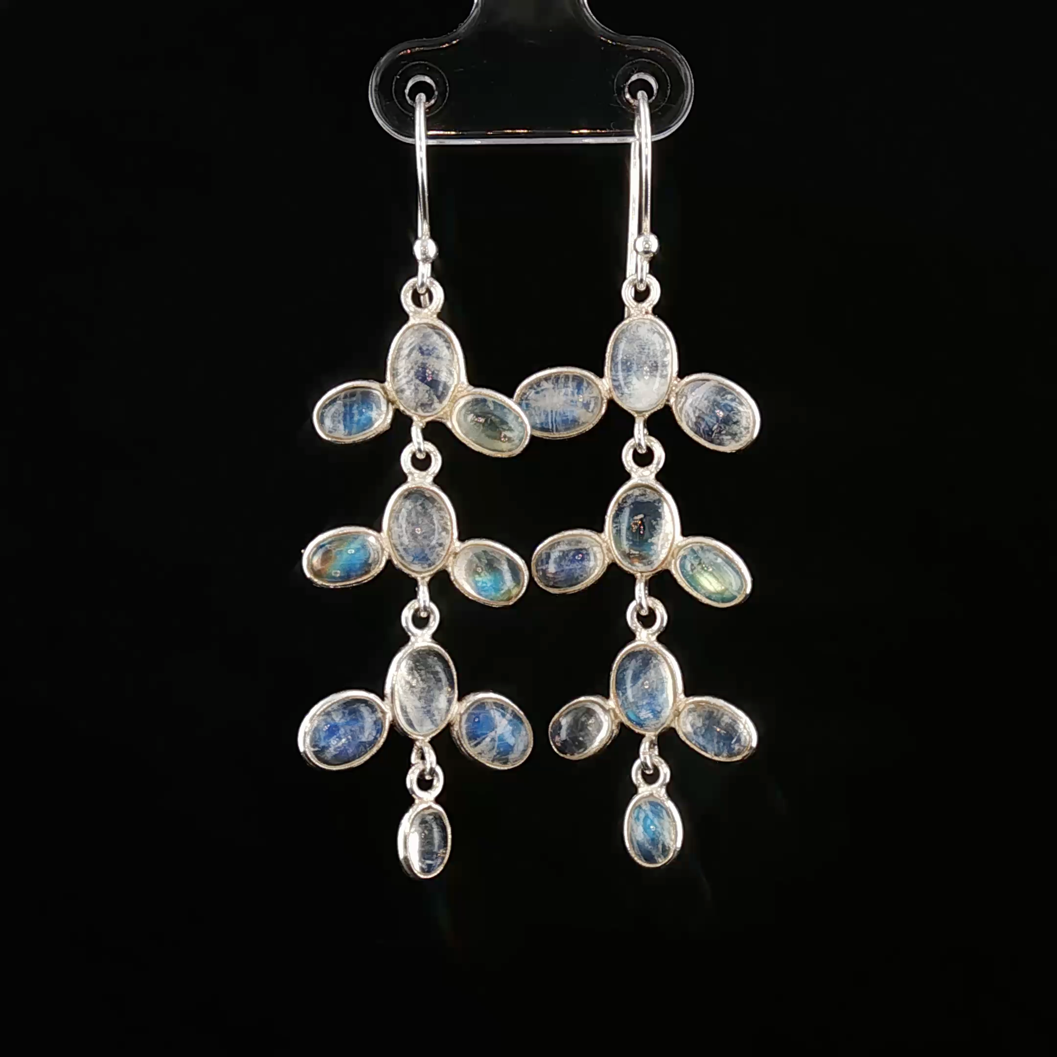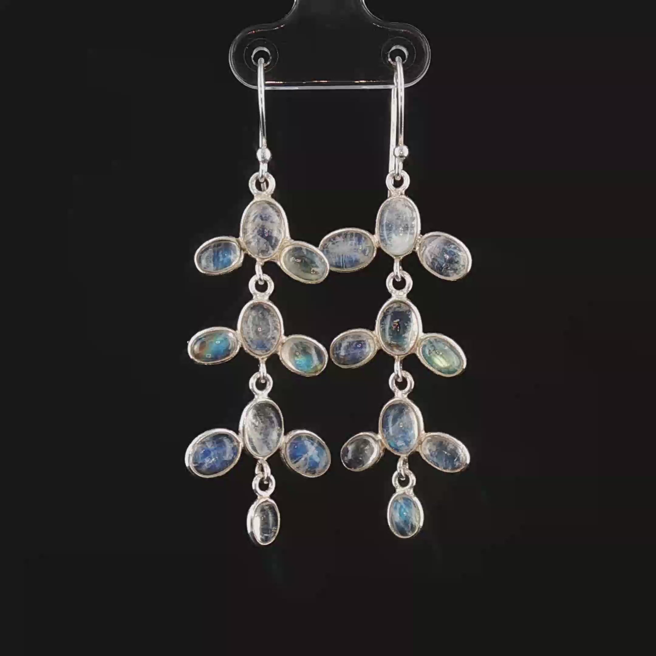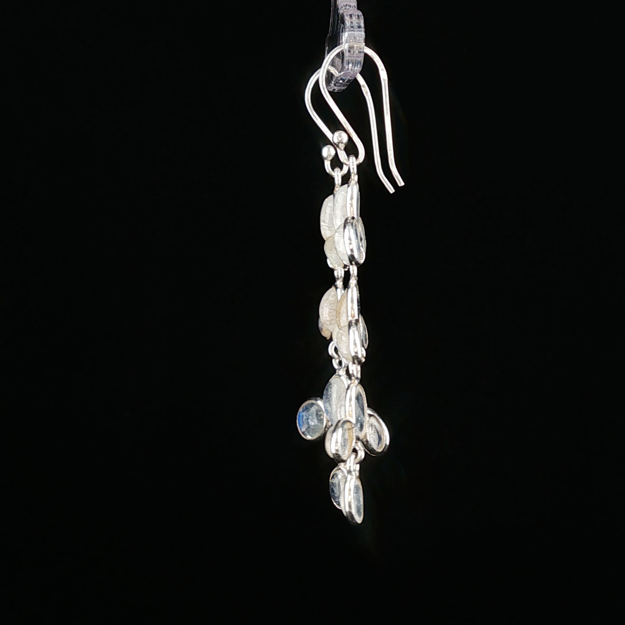 Ces boucles d’oreilles délicates mettent en valeur de sublimes pierres de de lune naturelle, aux reflets irisés bleutés et argentés. Montées sur une base en argent 925, elles captent la lumière à chaque mouvement et révèlent leurs éclats mystérieux et changeants.