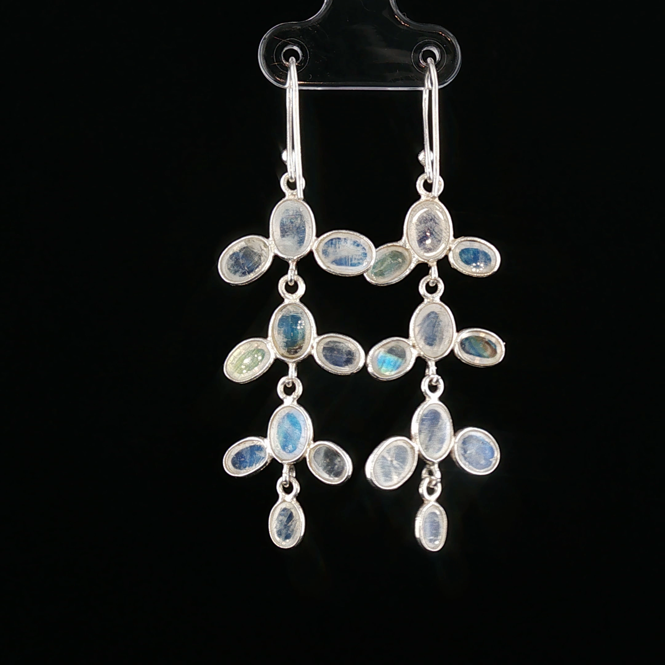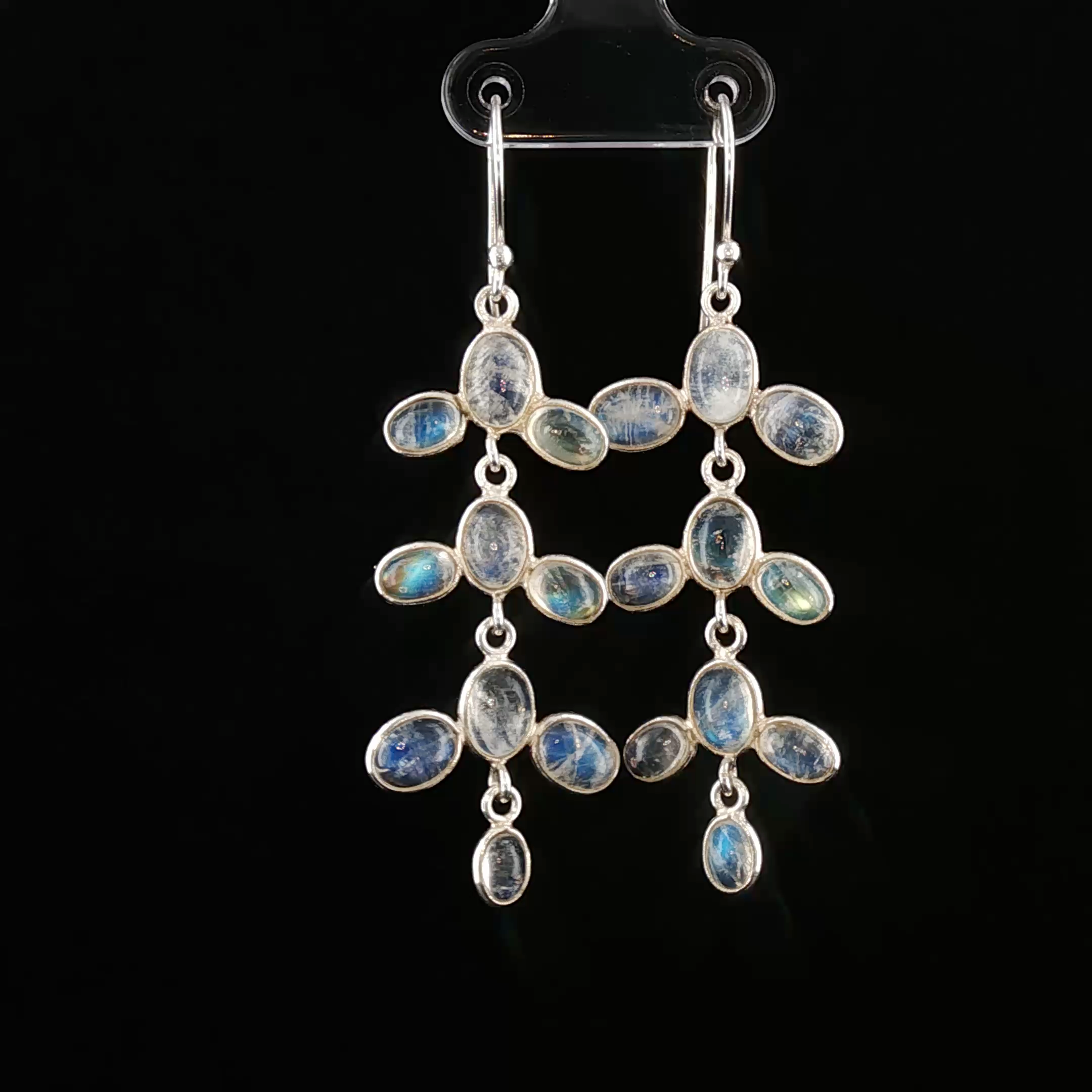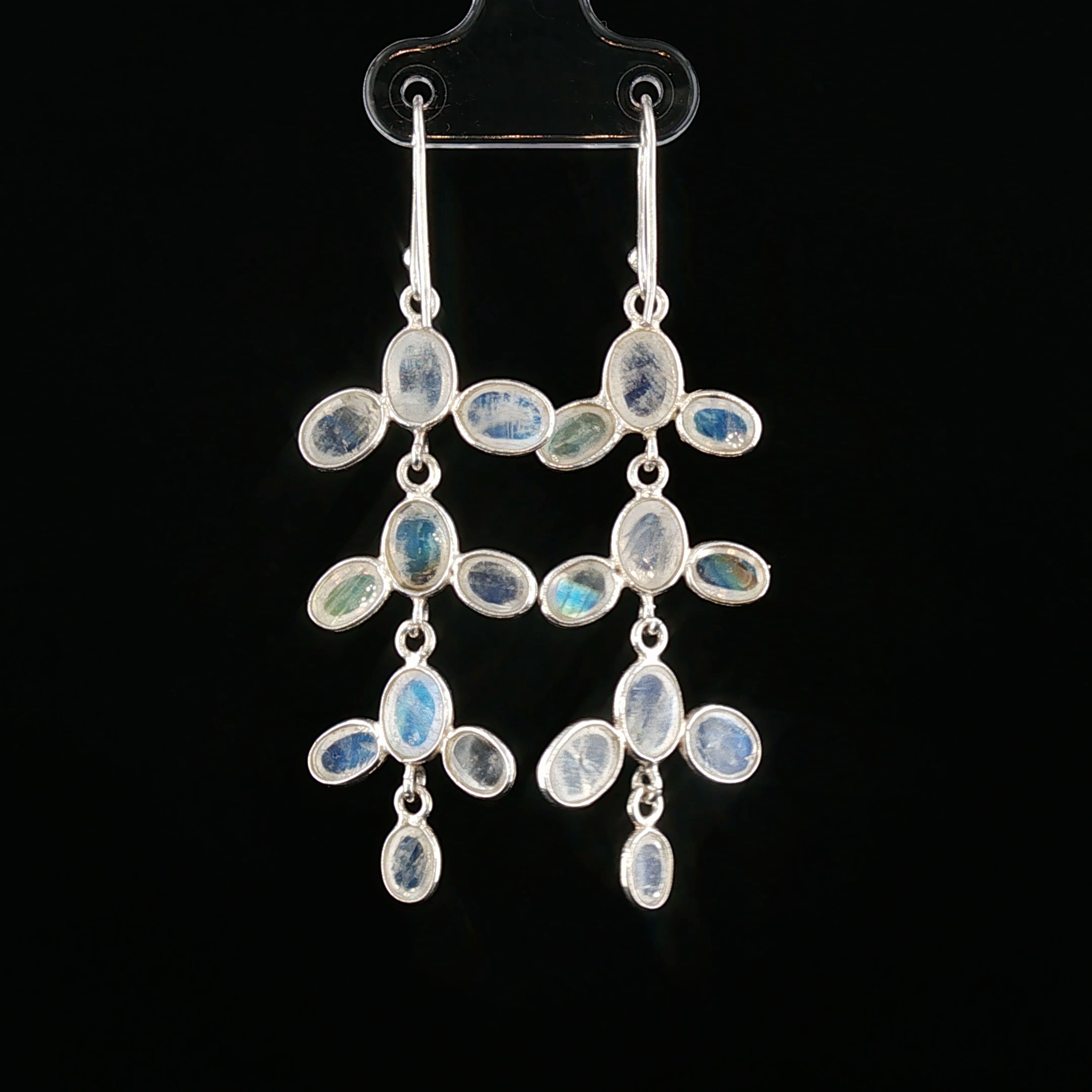 Ces boucles d’oreilles délicates mettent en valeur de sublimes pierres de de lune naturelle, aux reflets irisés bleutés et argentés. Montées sur une base en argent 925, elles captent la lumière à chaque mouvement et révèlent leurs éclats mystérieux et changeants.