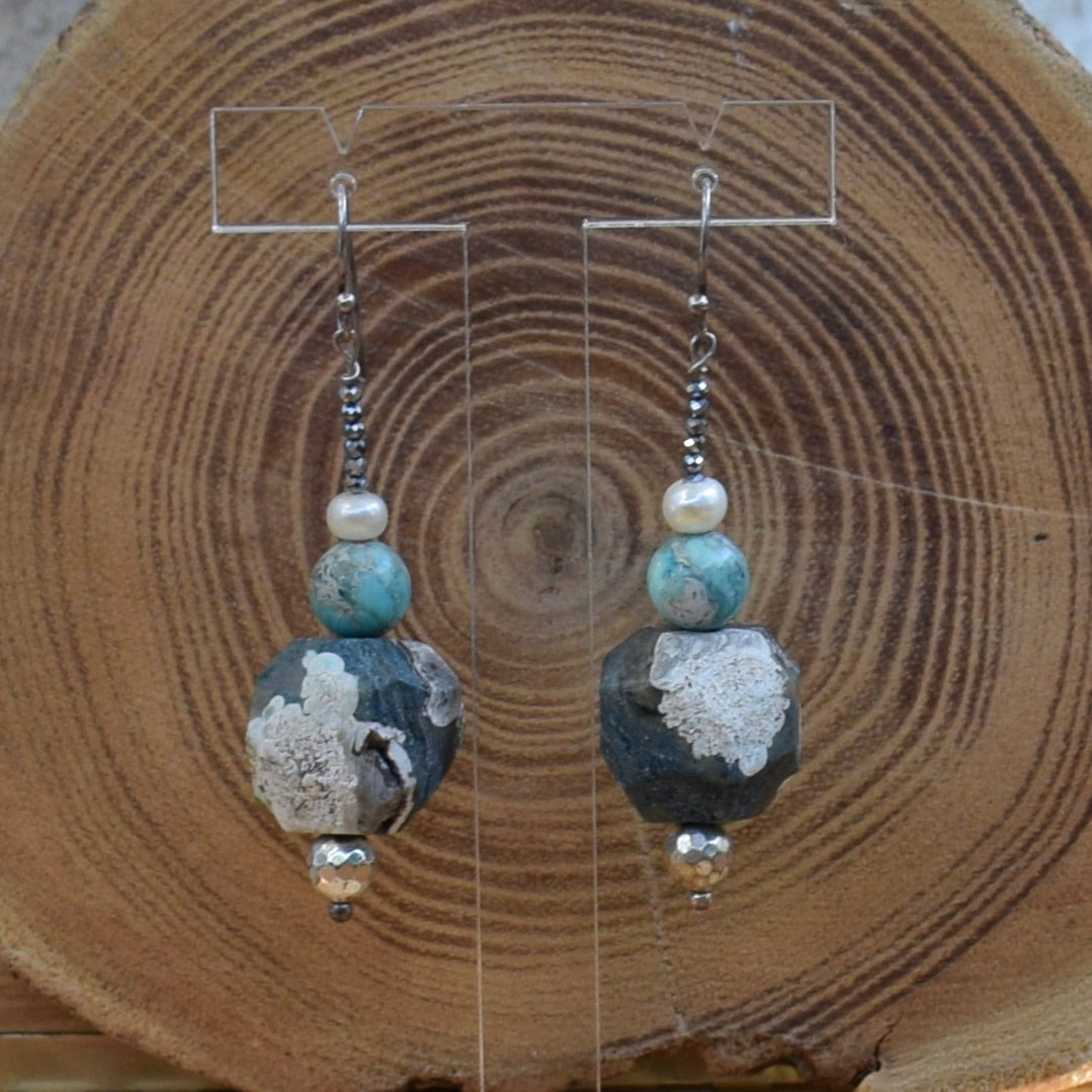 Boucles d'oreilles en argent 925/1000 avec pierres naturelles