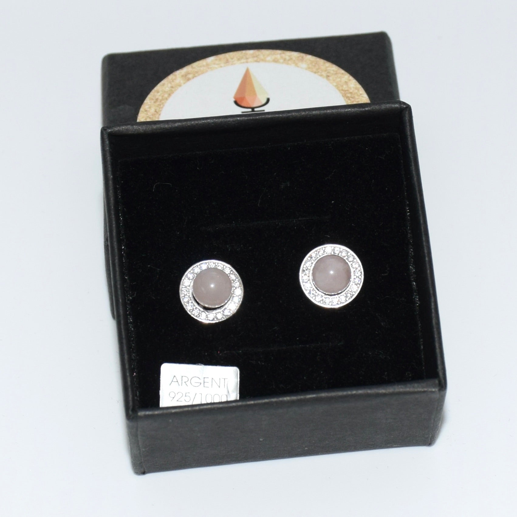 Boucles d'oreilles monté sur bélière en argent avec strass rhodié 925/1000