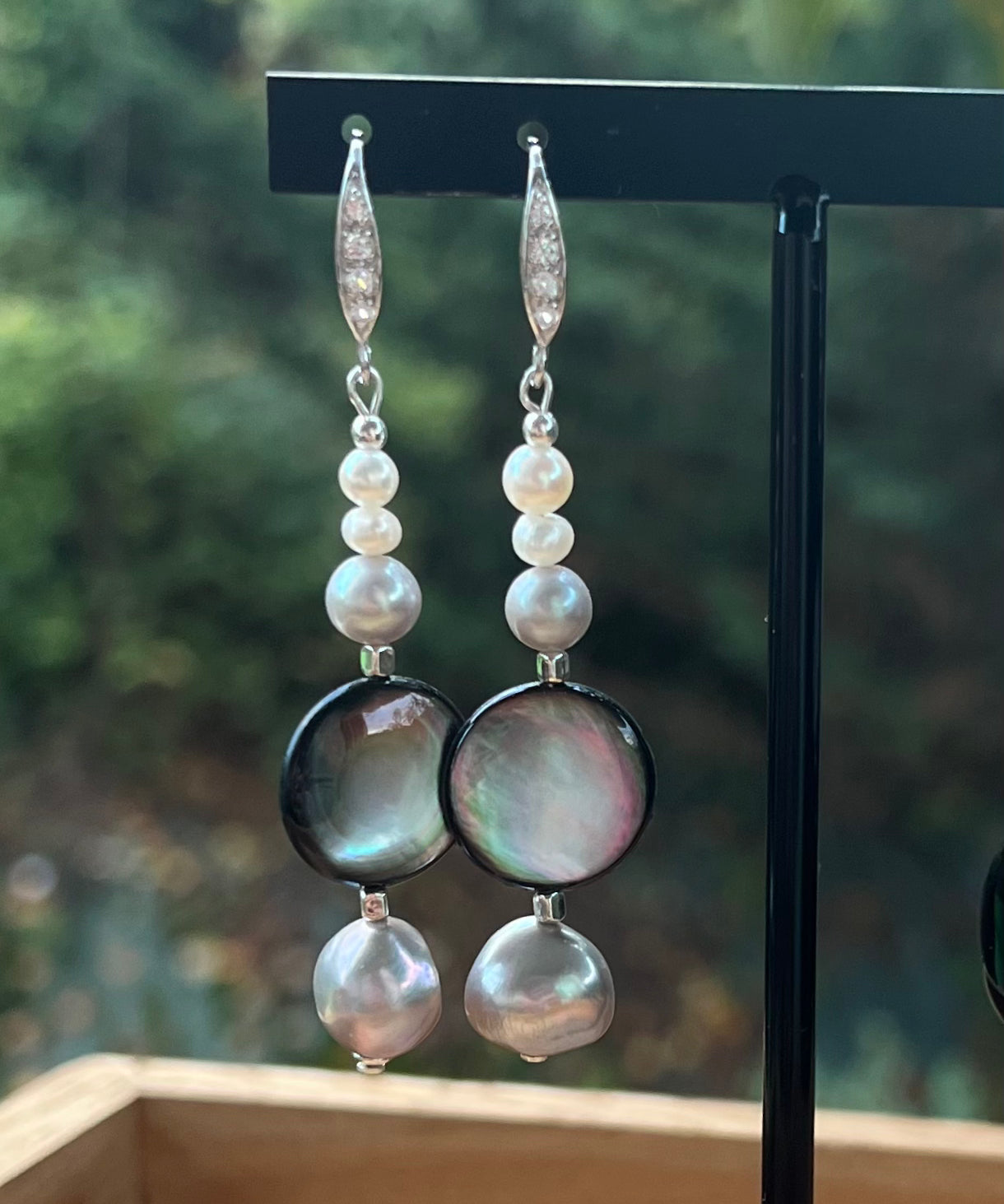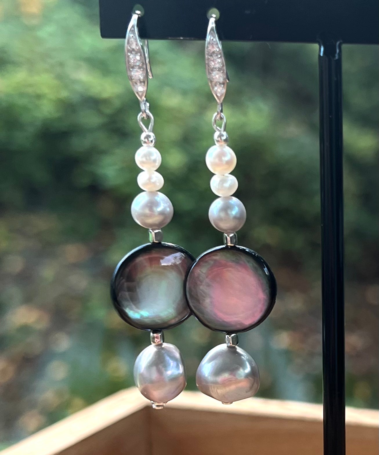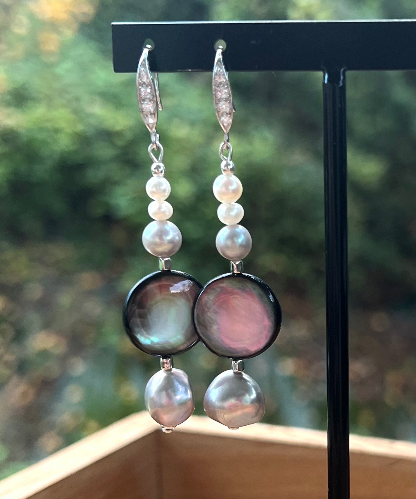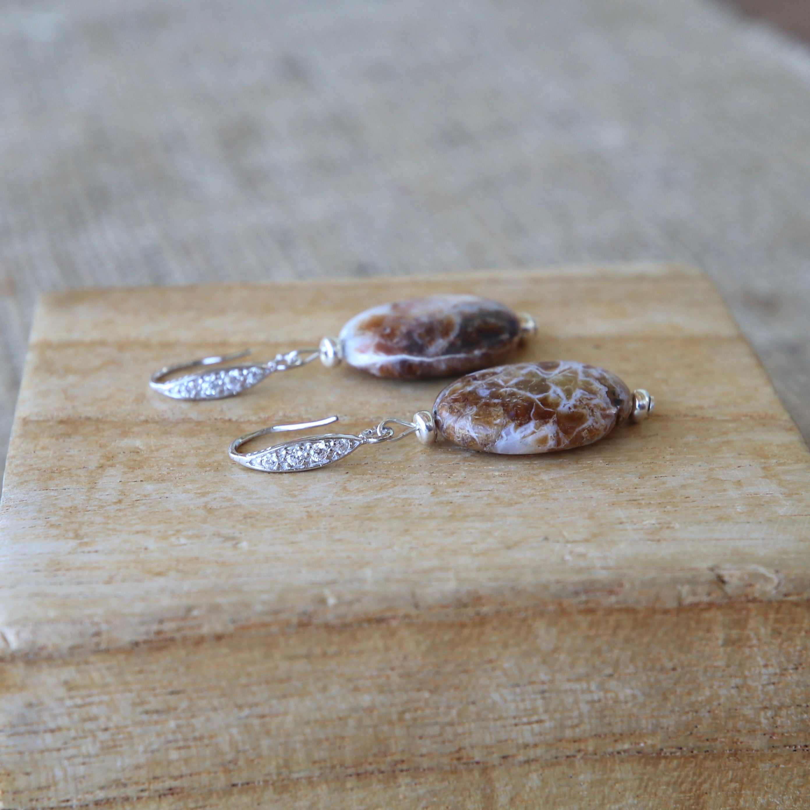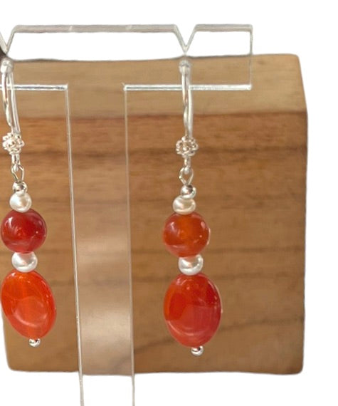 Boucles d'oreilles en agate feu et perle d'eau douce