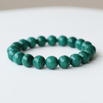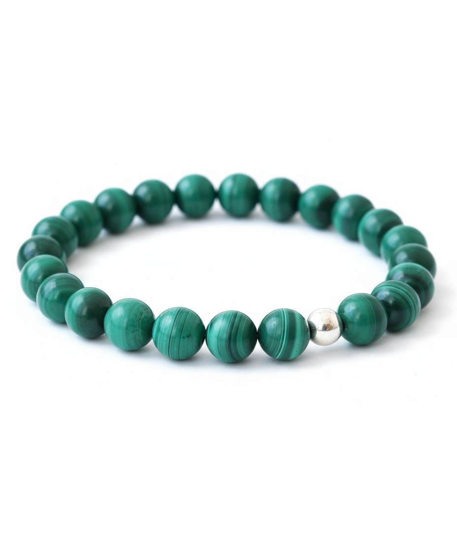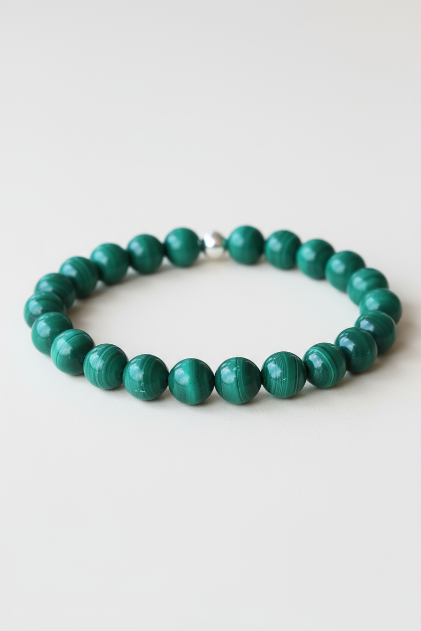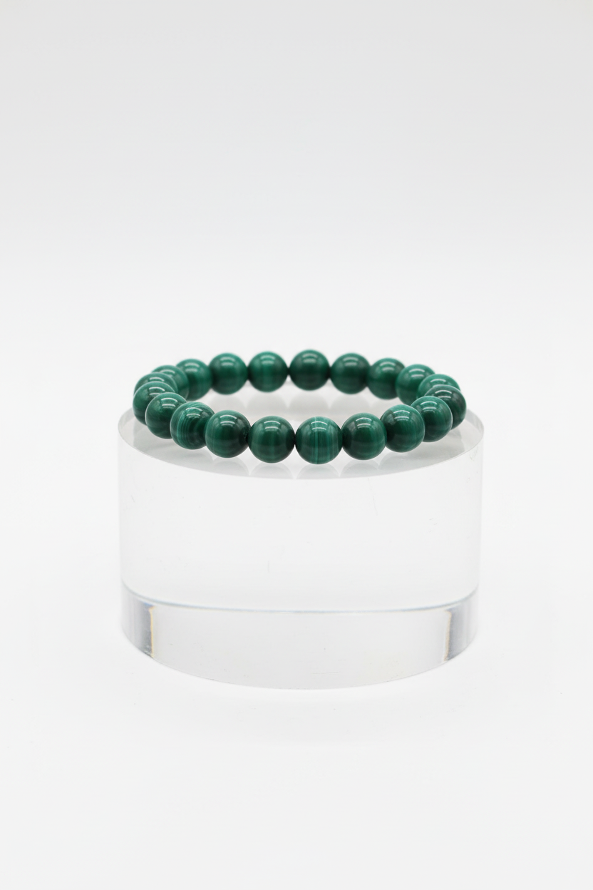 Composé de perles de malachite naturelle de 8 mm, ce bracelet allie élégance et protection énergétique.