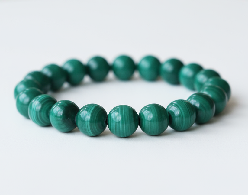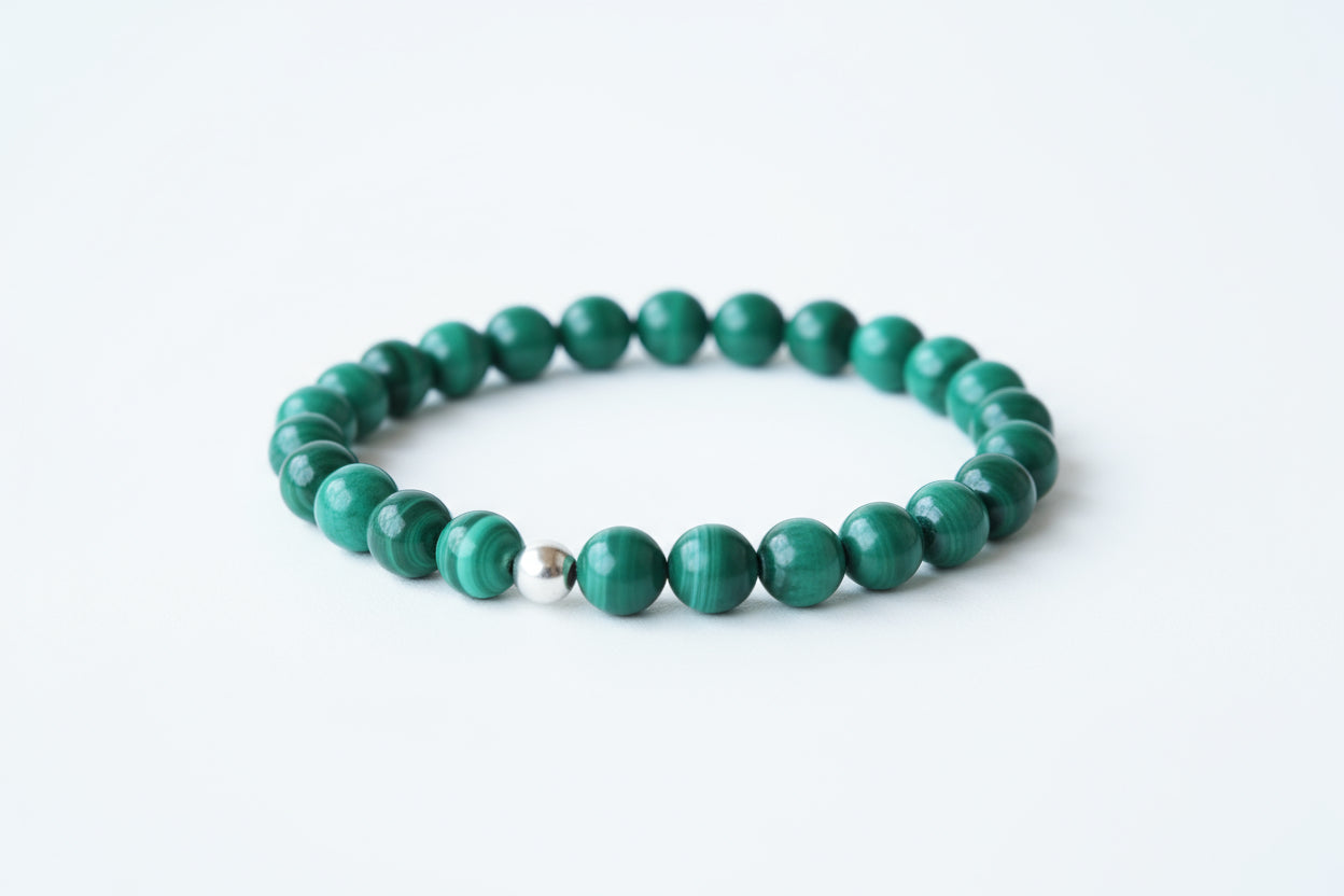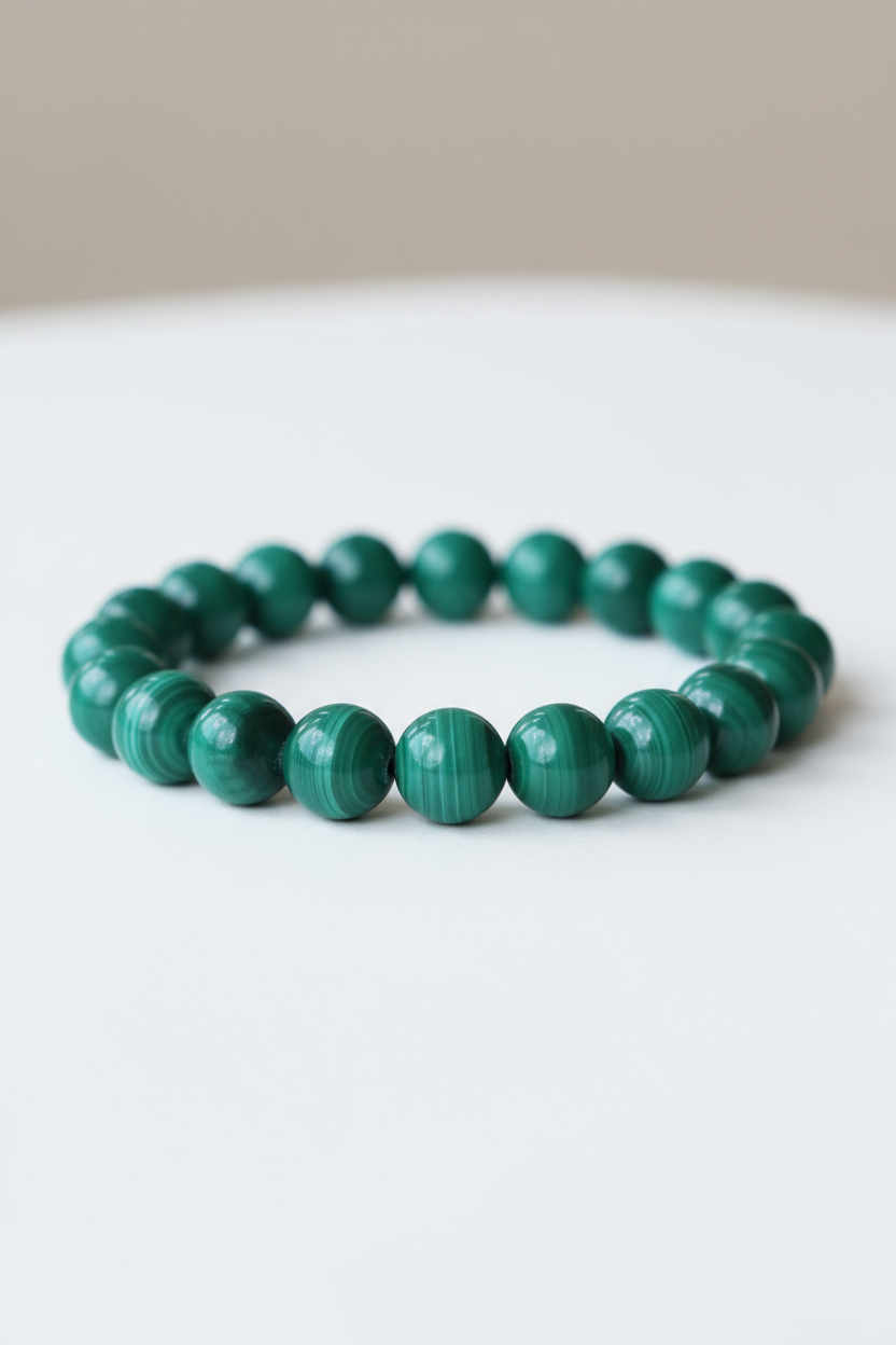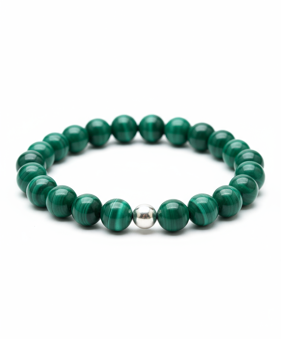 Composé de perles de malachite naturelle de 8 mm, ce bracelet allie élégance et protection énergétique.