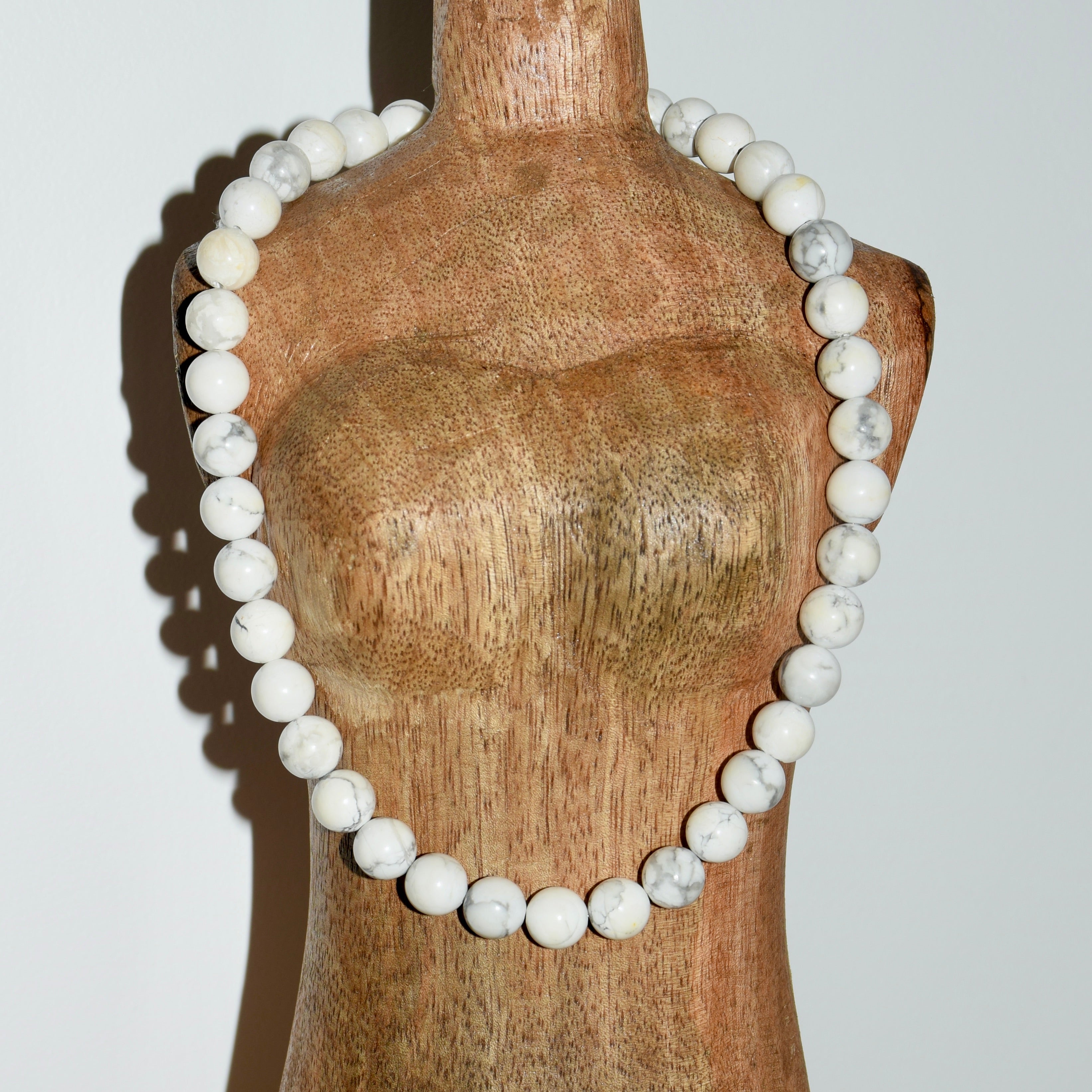 Pierres naturelles d'howlite 8mm, monté sur un câble avec fermoir en argent 925/1000.