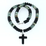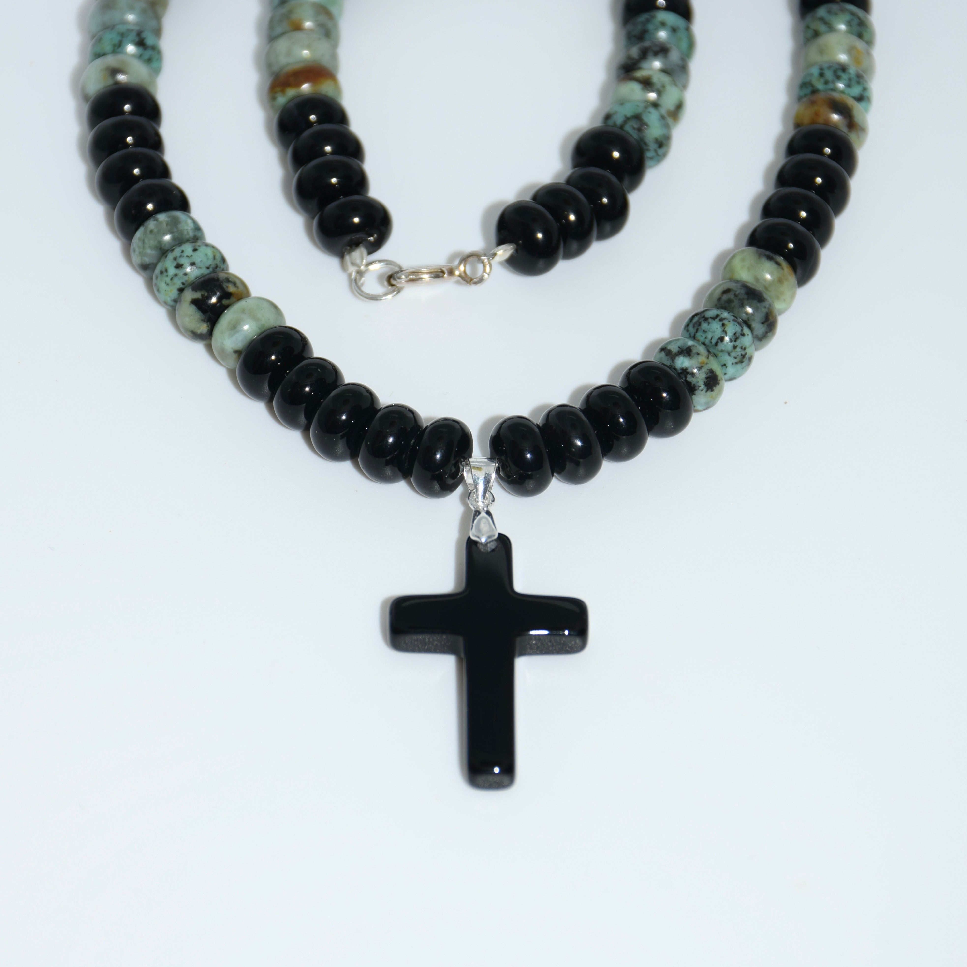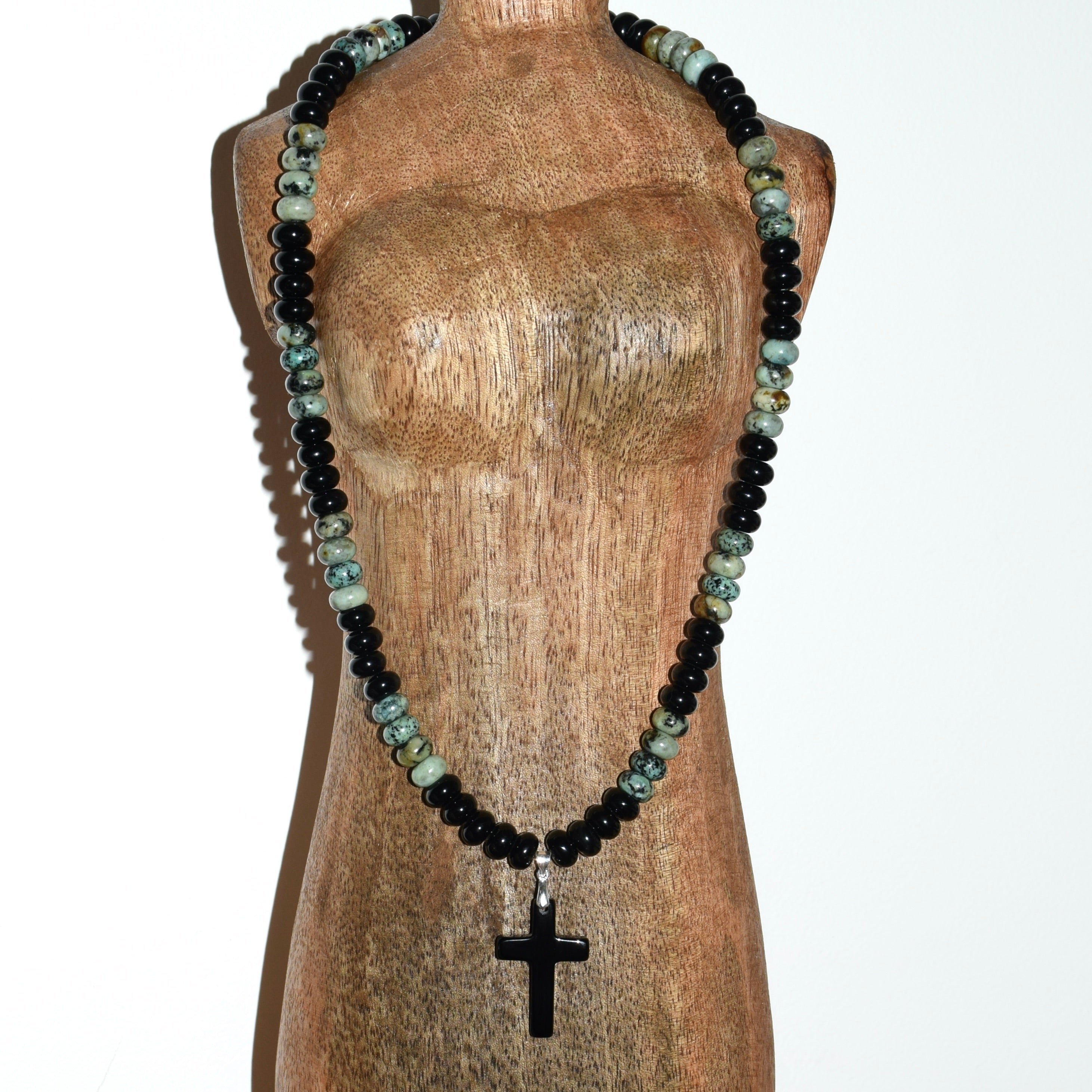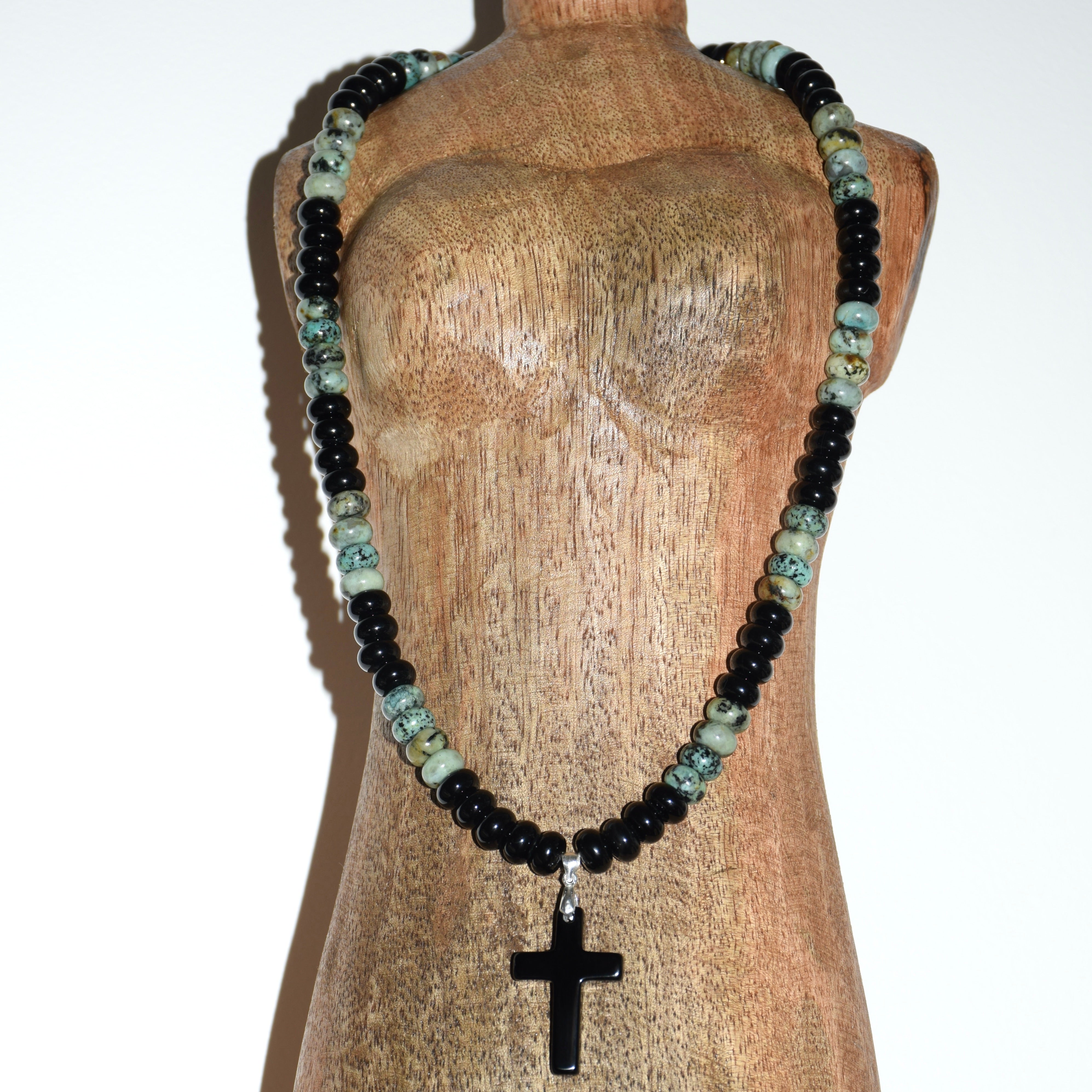 Collier pour homme, agate noire et turquoise d'Afrique naturelles qualité A.