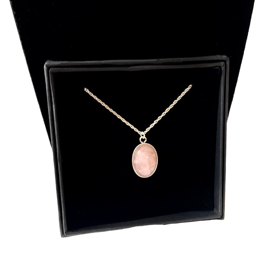 • Magnifique pendentif en quartz rose, serti d'argent 925/1000 avec sa chaine également en argent 925/1000.
