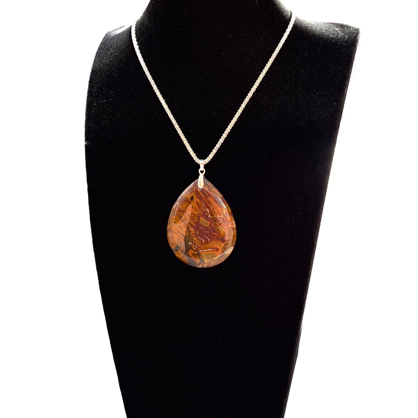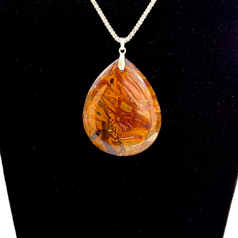 • Pendentif en jaspe avec sa chaine en argent 925/1000.