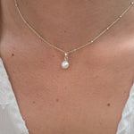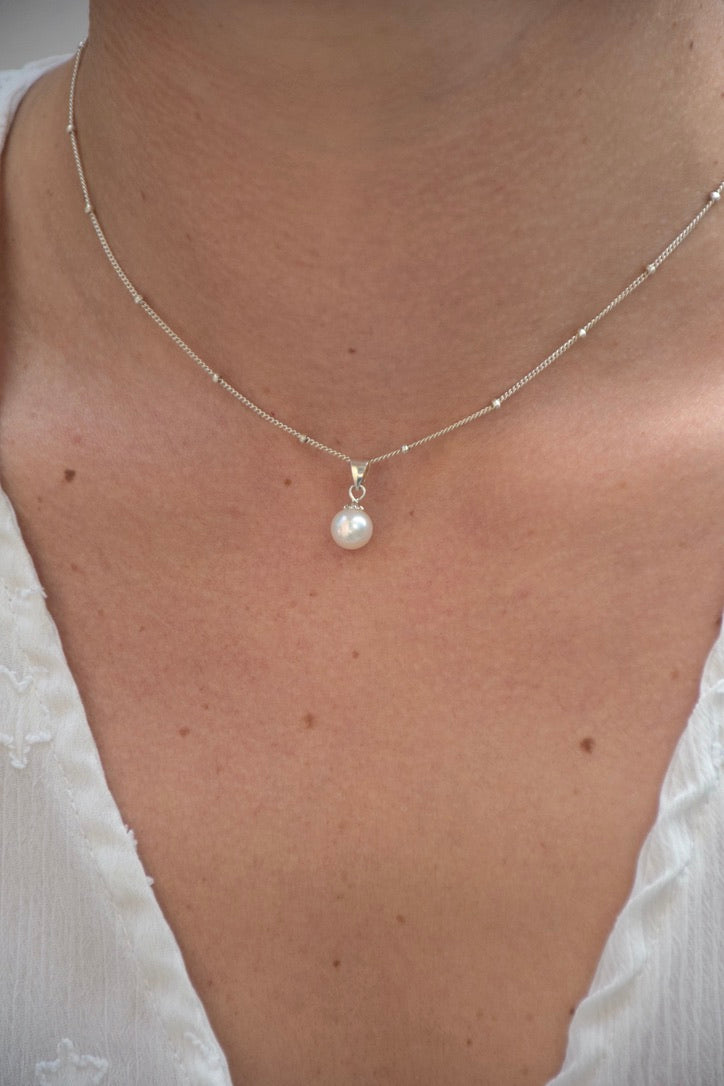 • Pendentif avec perle d'eau douce monté sur argent 925/1000 et chaine, fermoir en argent 925/1000.