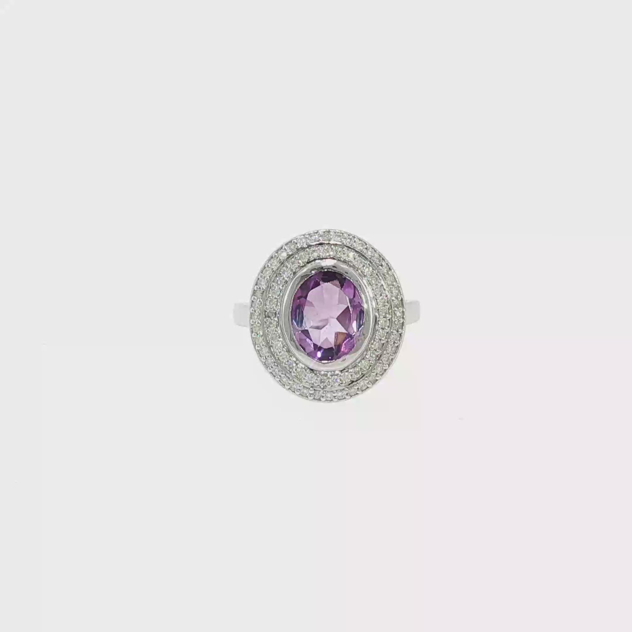 Cette composition joaillière apporte relief, brillance et équilibre, tout en mettant en valeur la noblesse de l’améthyste.