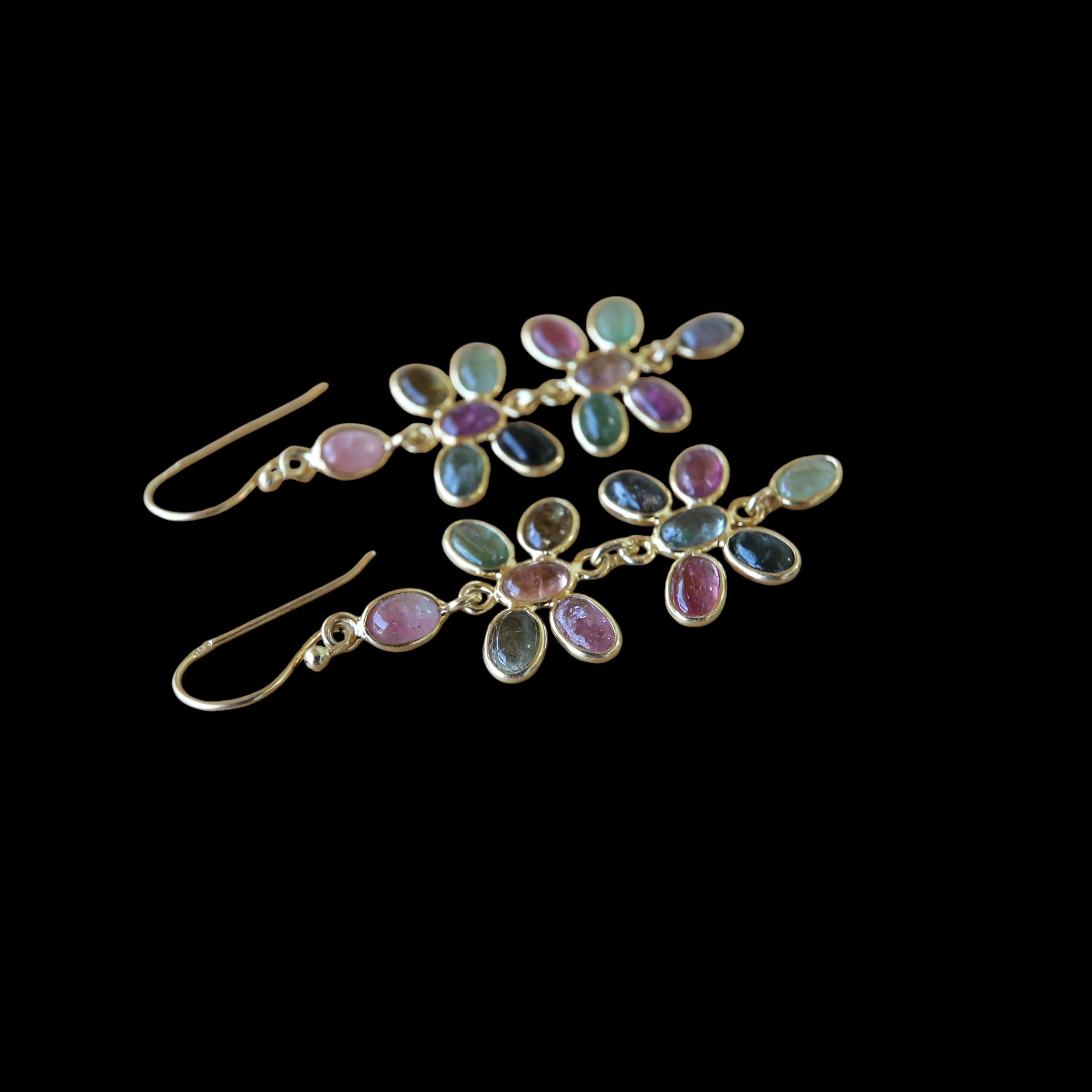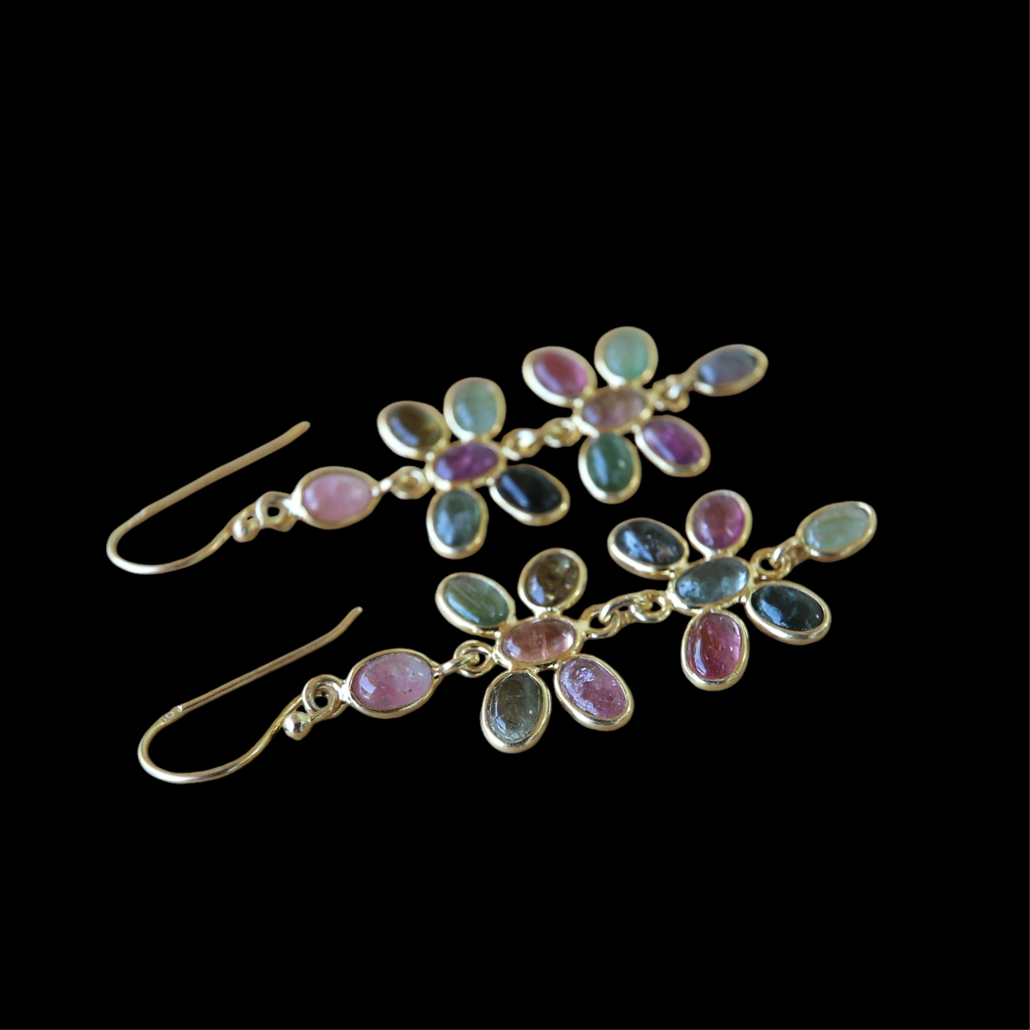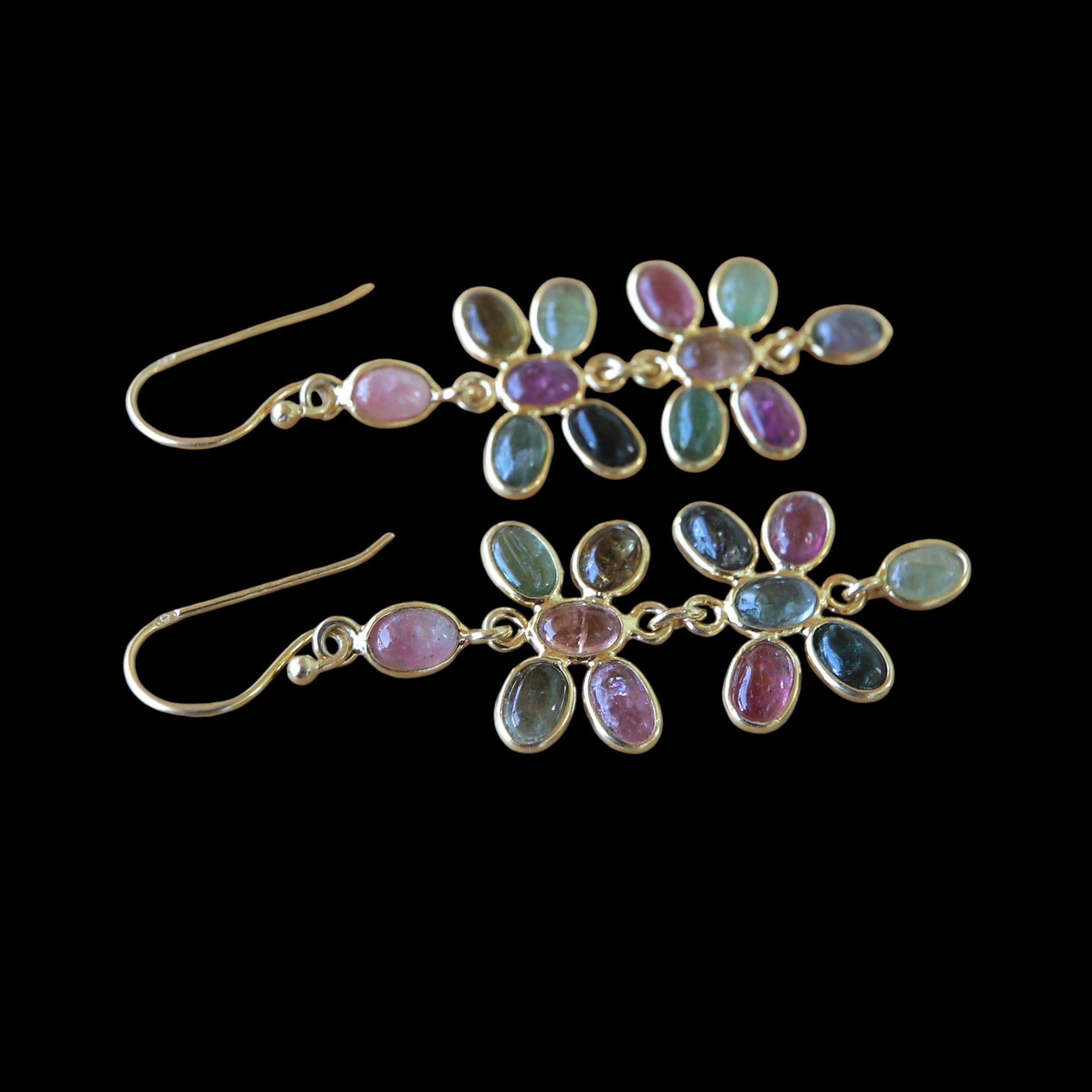 Boucles d'oreilles en tourmaline multicolore en plaqué or de qualité.
