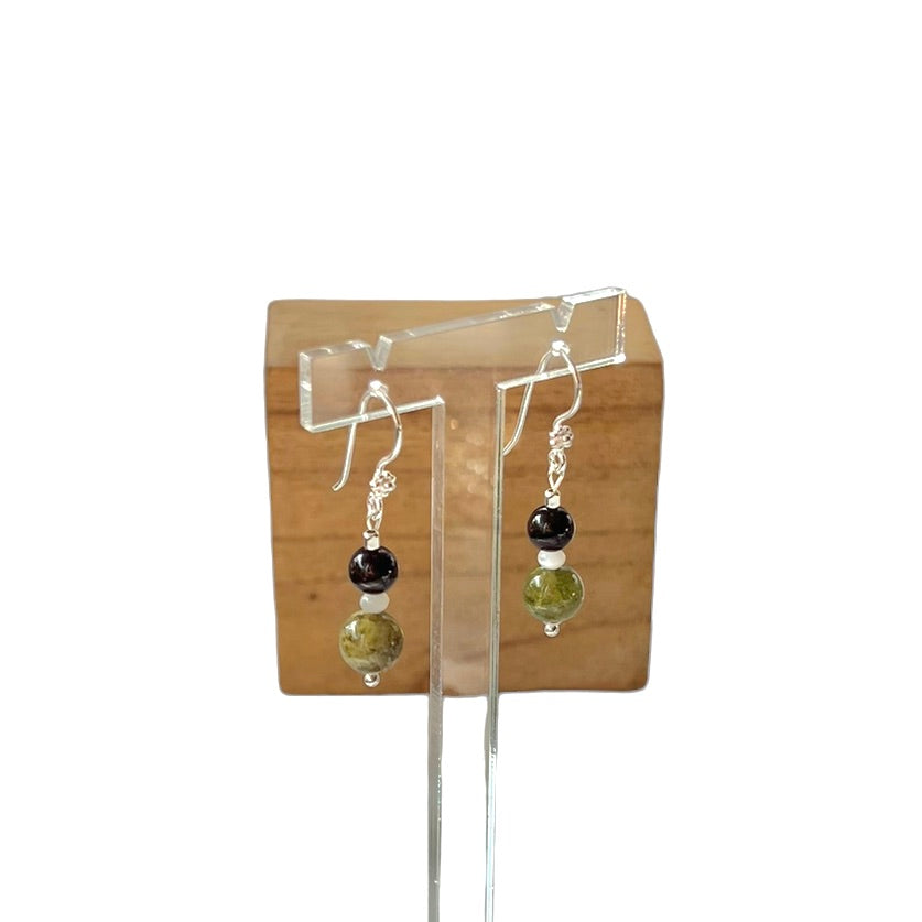 • Boucles d'oreilles en grenat rouge et grenat vert tout en argent 925/1000.