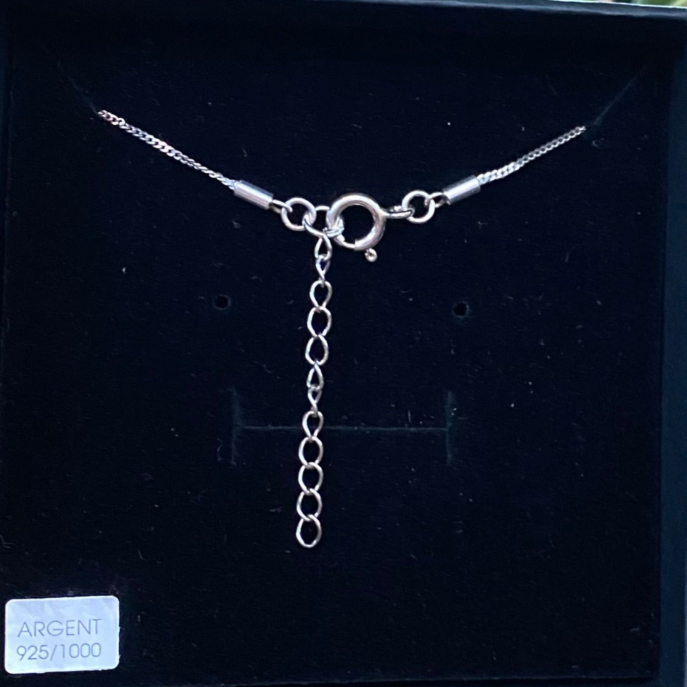 La chaîne est réglable, elle mesure 35 cm au plus court et 43 cm au plus long.